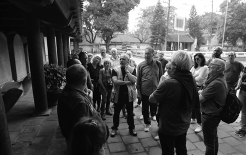 Foreign holiday-makers visit Van Mieu (the Temple of Literature) in Hanoi. (Photo: VNA) |