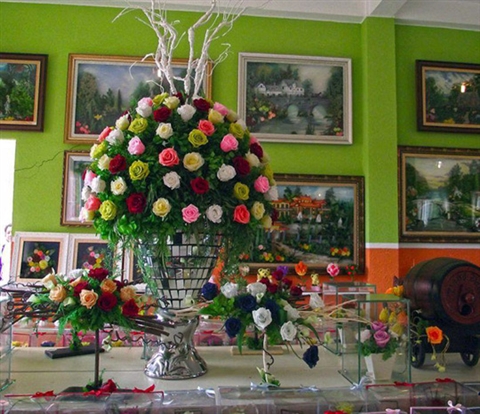Các sản phẩm hoa khô trưng bày tại Showroom được làm theo công nghệ sấy hoa khô hiện đại của Nhật. Những bông hoa tươi được sấy khô nhưng vẫn giữ được màu sắc như ban đầu và chúng ta có thể trưng bày những bông hoa này từ 3 đến 5 năm mà không sợ bị hư hỏng. Đặc biệt, trong quá trình sấy khô những cánh hoa vẫn giữ được độ mềm mại, trông như mới được cắt khỏi cành. Hoa và lá sau khi sấy khô sẽ được các nghệ nhân cắm và trưng bày thành những bức tranh theo nhiều phong cách sáng tạo với nhiều máu sắc khác nhau, tạo sự thích thú cho người dùng. Tại đây hoa được trưng bày nhiều nhất đó là hoa hồng các loại, với nhiều mẫu hoa hồng sấy khô phong phú, độc đáo, đủ màu sắc, nhiều dáng vẻ khác nhau.