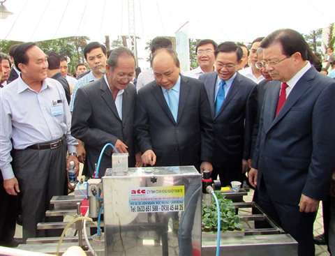 Thủ tướng Nguyễn Xuân Phúc thăm gian hàng trưng bày máy cơ khí nông nghiệp của Doanh nghiệp Thanh Trị tại Đà Lạt. Ảnh: V.Việt