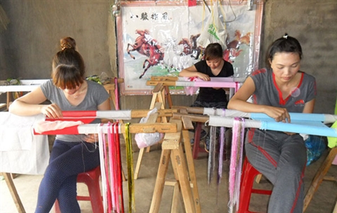 Thời gian qua, nhiều mô hình thanh niên làm kinh tế đã và đang tạo công ăn việc làm cho nhiều ĐVTN địa phương. (Trong ảnh: Các thành viên tổ thêu tay của ĐVTN xã Ninh Gia). Ảnh: N.M