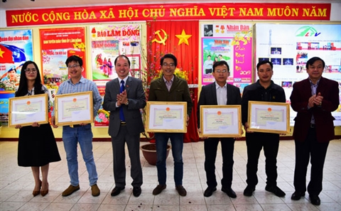 Tại buổi lễ, Sở Thông tin - Truyền thông đã tặng giấy khen cho 5 đơn vị có pa-nô, ấn phẩm xuất sắc trưng bày tại Hội Báo Xuân (Cơ quan thường trú Báo Nhân Dân tại Lâm Đồng, Cơ quan thường trú Báo Quân đội nhân dân tại Lâm Đồng, Báo Lâm Đồng, Cơ quan thường trú Báo Tuổi Trẻ tại Lâm Đồng và Bản tin thông tin nội bộ- Ban Tuyên giáo Tỉnh ủy Lâm Đồng).