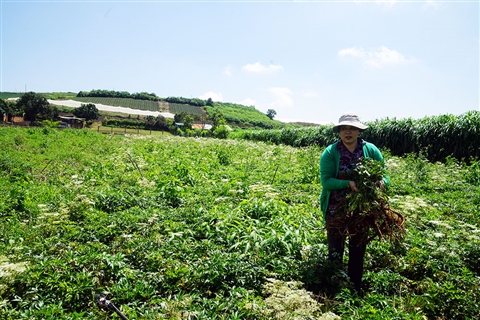 Bà Thi trong vườn đương quy chuẩn bị thu hái. Ảnh: N.Quân |