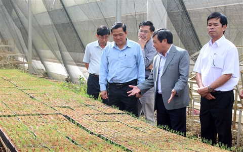 Đồng chí Đoàn Văn Việt - Chủ tịch UBND tỉnh thăm vườn ươm công nghệ cao của Công ty TNHH Một thành viên Lâm nghiệp Di Linh. Ảnh: Võ Lan |