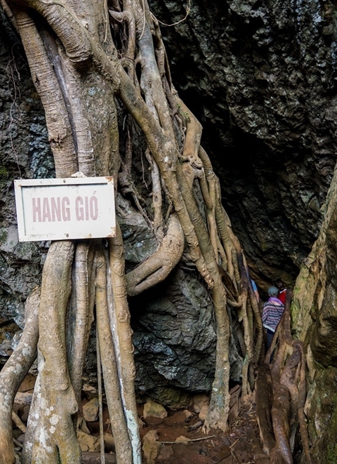 Đường vào hang Gió dài khoảng 20 m, khá khó đi vì hẹp, tối, trơn trượt.