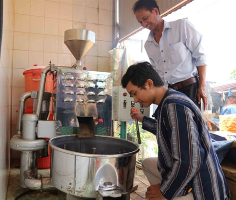 Gia đình K’Luys trang bị một máy rang cà phê để phục vụ việc chế biến cà phê hoàn toàn khép kín |