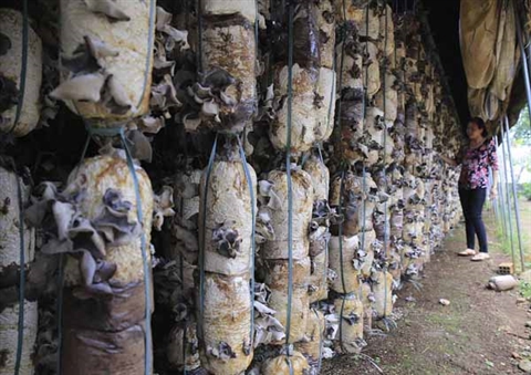 Nấm mèo ở làng nghề Nấm, tổ dân phố 5, thị trấn Liên Nghĩa hiện đang được thị trường trong nước ưa chuộng vì chất lượng hơn hẳn sản phẩm ở vùng khác |