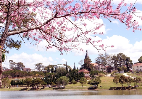 Mai anh đào qua một thời gian “ngậm sương”, “thiếp” đi trong mùa đông và bung nở trong mùa nắng lạnh đặc hữu trên cao nguyên Lang Biang. Đó là mùa hò hẹn ngắm mai anh đào Đà Lạt. Mùa xuân, hoa mai anh đào nở hồng khắp các cung đường phố núi. Sắc hồng của loài hoa này đã khiến bao lữ khách ngẩn ngơ, say đắm. Bạn có thể dạo chơi trên các cung đường nội đô Trần Hưng Đạo, Hùng Vương, Lê Đại Hành, Hồ Tùng Mậu, quanh hồ Xuân Hương thơ mộng, hay rời xa phố thị đến với Trại Mát, Xuân Thọ, Xuân Trường và trên những cung đường bao bọc khu du lịch quốc gia hồ Tuyền Lâm… để chiêm ngưỡng loài hoa sắc hồng có năm cánh giống hoa mai tô thắm miền cao nguyên này. Đang cùng bạn gái ghi hình kỷ niệm trên cung đường rợp sắc xuân, bạn Nguyễn Hoàng Ánh (Hà Nội), cho biết: “Đây là lần thứ hai bọn mình hẹn hò cùng ngắm mai anh đào Đà Lạt. Mùa này ở thành phố cao nguyên thật thú vị, phố phường rợp sắc hồng quyến rũ. Chắc chắn, mình sẽ đến với mùa hoa mai anh đào Đà Lạt nhiều lần nữa”.