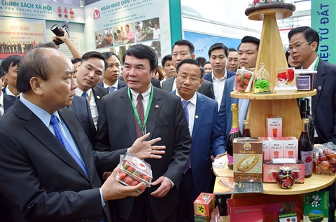 Thủ tướng Nguyễn Xuân Phúc thăm gian hàng triển lãm thành tựu nông nghiệp Lâm Đồng tại Trung tâm Hội nghị Quốc gia Hà Nội. Ảnh: V.Việt |