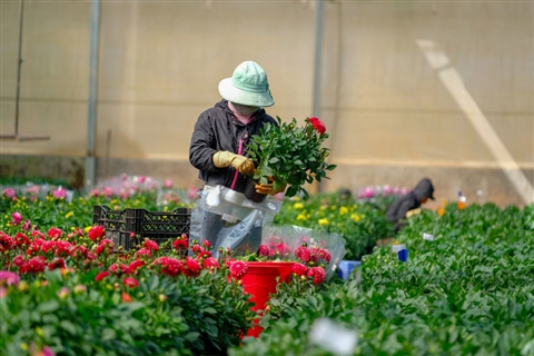 | Tại Đà Lạt, hoa chậu được các đơn vị sản xuất chú trọng đầu tư vì có thể bán được trước và sau tết, tránh được rủi ro dội chợ |