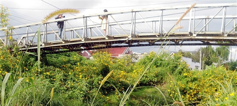 | Chụp hình bên cầu hoa vàng gần thác Cam Ly |