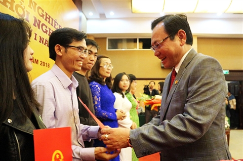 | TS Nguyễn Công Nguyên nhận quyết định hỗ trợ vốn cho các ý tưởng khởi nghiệp năm 2018. Ảnh: H.Thắm |