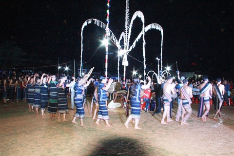 | Nối rộng vòng xoang đoàn kết quanh cây nêu. Ảnh: M.Đạo |
